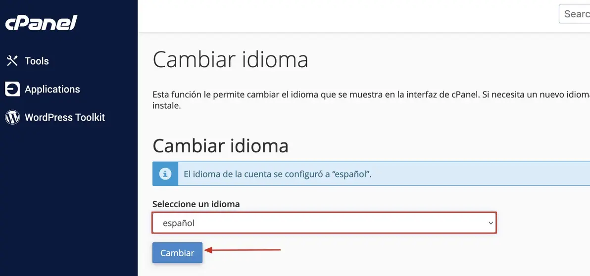 Si requerimos actualizar el idioma de nuestro cPanel debemos ingresar al panel de control.