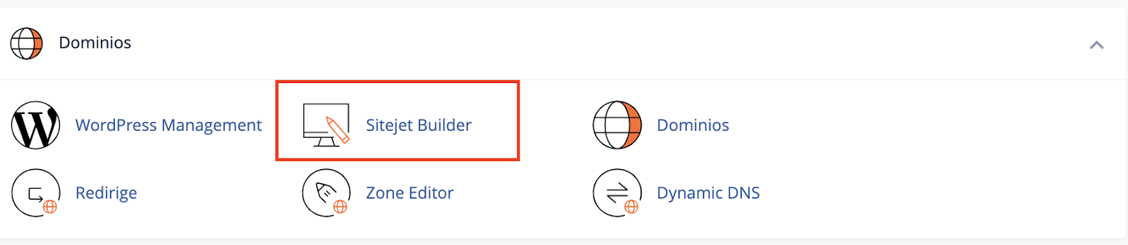 Ingresa a tu cPanel y haz clic en la sección Sitejet Builder.