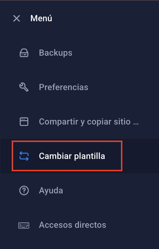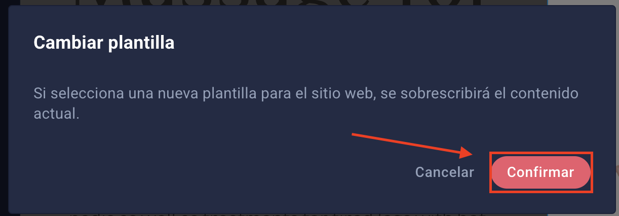 Cambiar de plantilla eliminará todo el contenido actual de tu sitio web. Esto incluye textos, imágenes, secciones personalizadas y cualquier ajuste que hayas realizado.