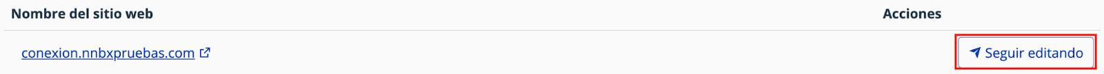 En la lista de sitios, haz clic en Seguir editando en el proyecto que deseas modificar.