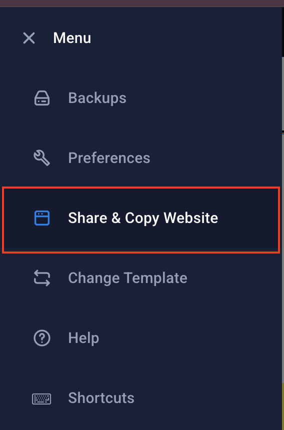 3. Dentro del menú, ve a Compartir y copiar sitio.