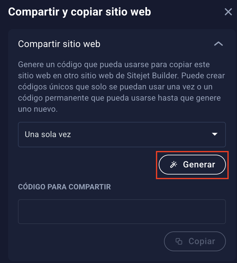 1. Puedes generar un código único o uno que se conserve siendo el mismo.Copia el código que aparece en la sección Código para compartir.
