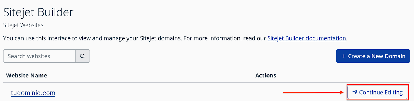 2. Dirígete a la sección Dominios > Sitejet Builder.